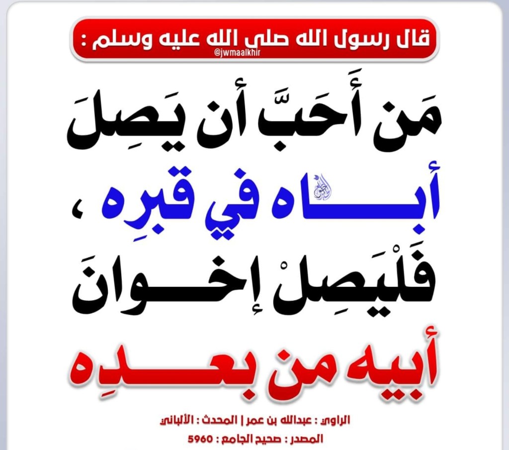 “Whoever loves to keep the ties of kinship with his father while his father is in his grave, let him keep the ties of kinship with his father’s brothers after his death.”